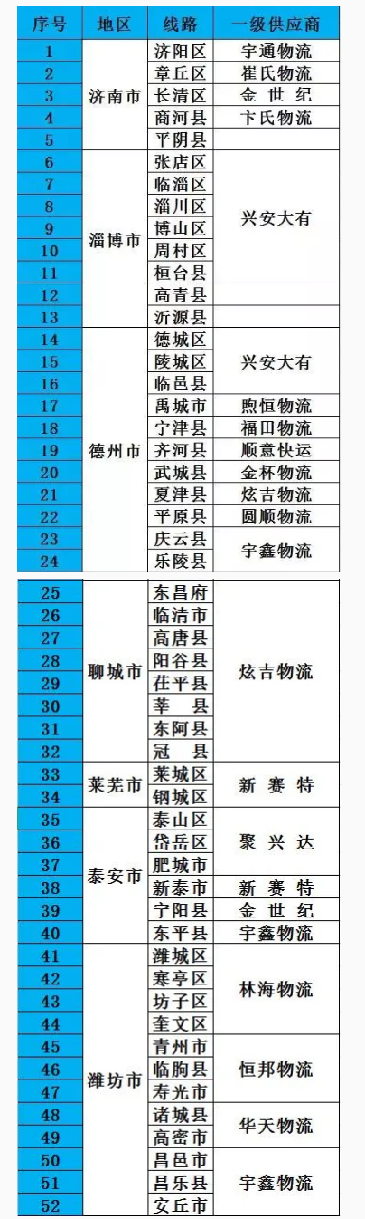 1、濟南為中心輻射山東所有地、縣級市,直達線路122條,提升服務時效的同時降低客戶的運營成本。