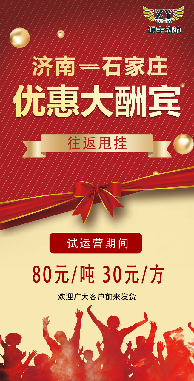 熱烈祝賀振宇物流9.13號開通濟(jì)南到石家莊專線!往返甩掛,優(yōu)惠多多!