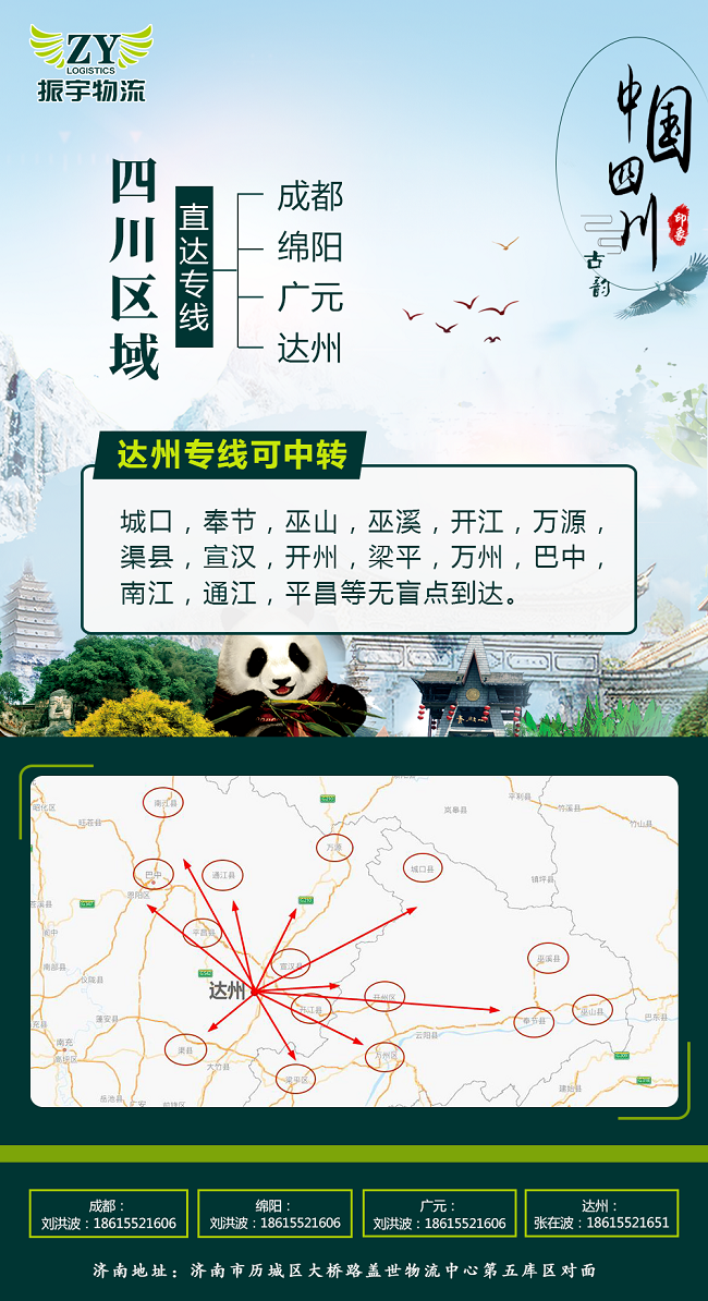 濟南直發(fā)成都、綿陽、達(dá)州、廣元