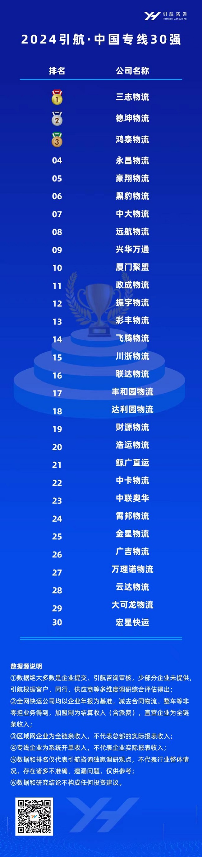 振宇物流榮膺2024引航·中國零擔(dān)50強,位列第31名。2024引航·中國專線30強,位列第12名。