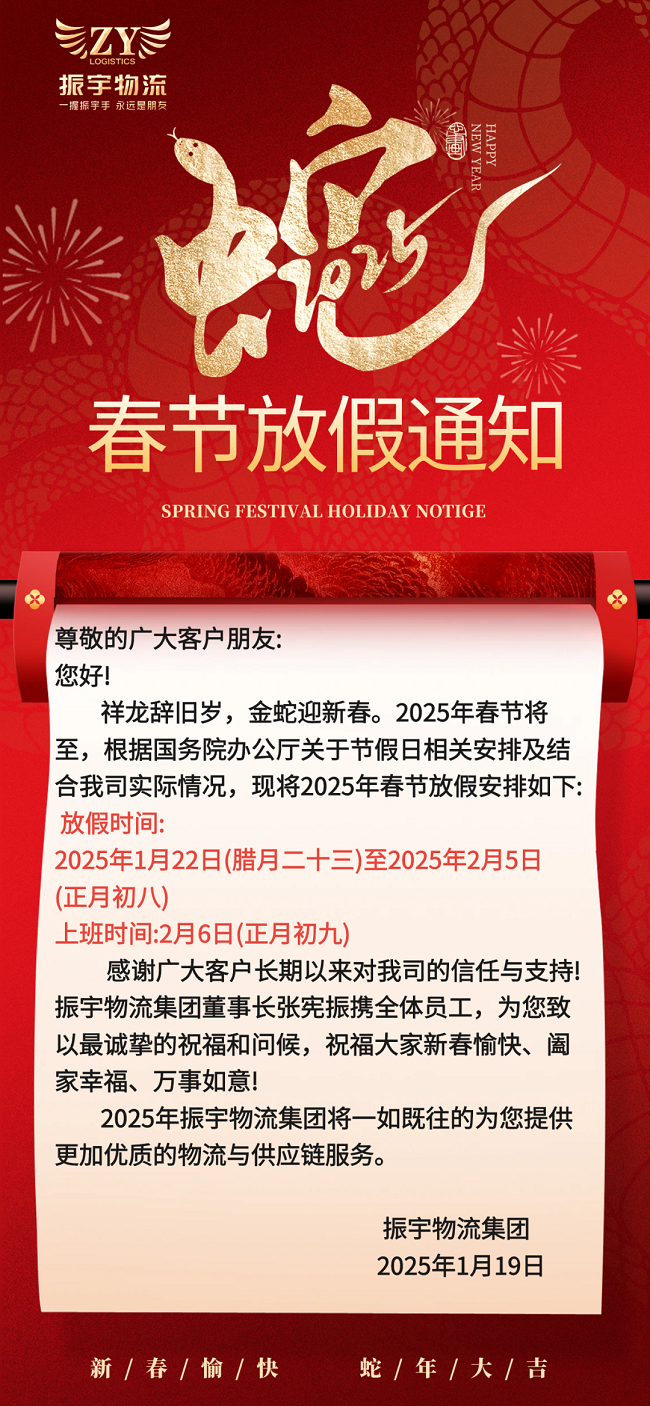 振宇物流集團(tuán)丨2025年春節(jié)放假通知