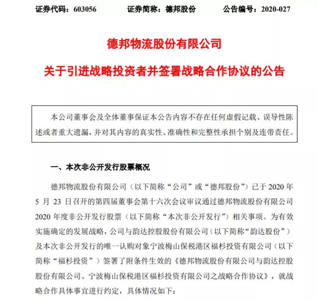 濟(jì)南物流公司:韻達(dá)戰(zhàn)略投資德邦,占股約6.5%,快遞投資并購好戲開始?