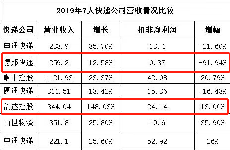 而根據(jù)德邦股份發(fā)布了2019年業(yè)績報(bào)告,2019年實(shí)現(xiàn)營業(yè)收入259.22億元,同比增長12.58%;實(shí)現(xiàn)歸屬上市公司股東凈利潤3.24億元,同比下滑53.82%??鄯莾衾麧櫹陆?91.94%。在虧損的邊緣徘徊。