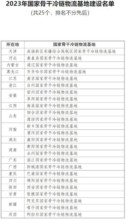 濟(jì)南物流:25個(gè)!2023年國(guó)家骨干冷鏈物流基地建設(shè)名單公布
