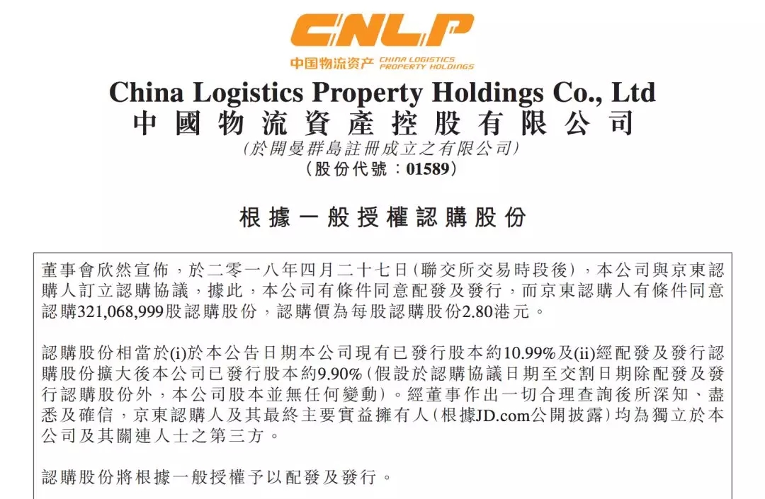 中國物流資產控股有限公司近日宣布,已與京東認購人訂立股份認購協(xié)議,京東認購人為JD.com, Inc.子公司。