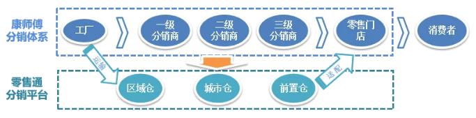 而對于康師傅而言,以往只是將物流外包給第三方,分銷商流仍由自己把控;而傳統(tǒng)的分銷體系中,商品從工廠到小店的鏈路長,通常要經(jīng)過三四個層級,而且品牌廠商一般只和代理商、經(jīng)銷商接觸,對于末端小店的銷售情況知之甚少,更不用說對最終消費(fèi)者的感知了。鏈路長、數(shù)據(jù)斷層等導(dǎo)致牛鞭效應(yīng)較為明顯,因此康師傅也希望借助數(shù)字化平臺來打通渠道鏈條、提升通路效率。